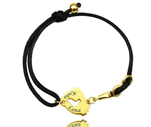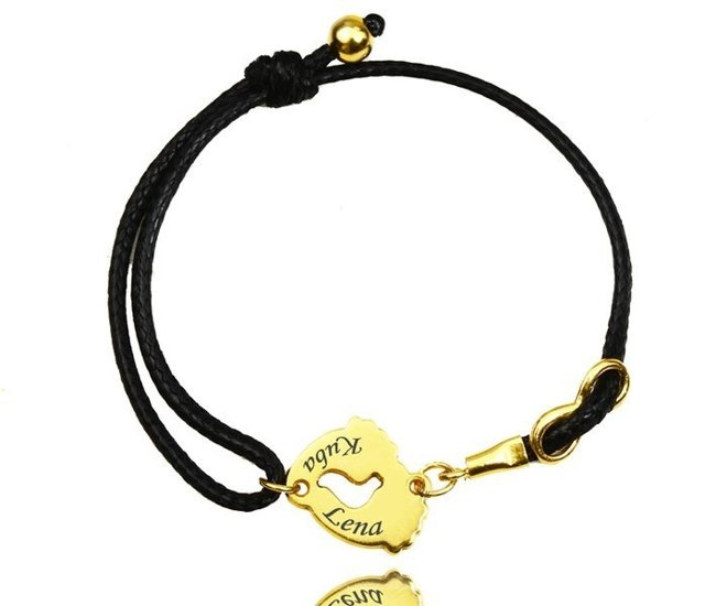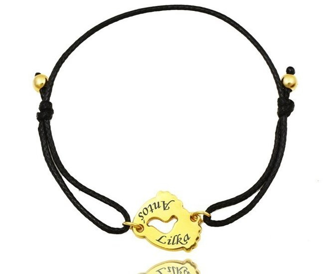 1125 bransoletka z grawerem złote stópki na sznurku
