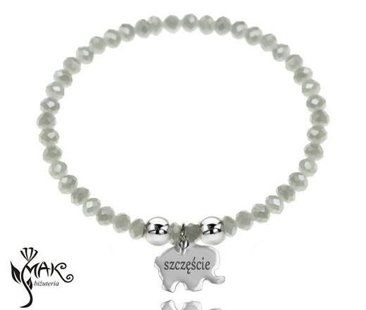 BR825 BRANSOLETKA Z GRAWEREM stal kryształki szary słonik