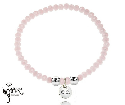 BR825 BRANSOLETKA Z GRAWEREM stal kryształki róż kółko