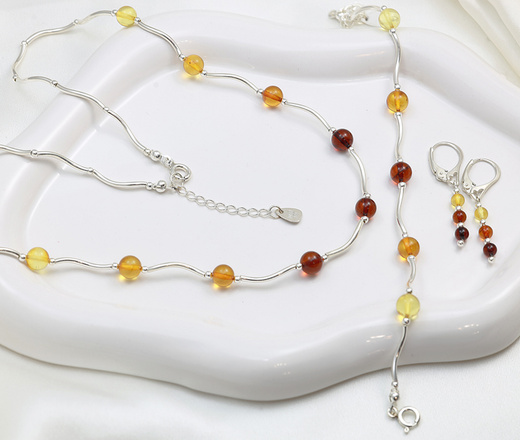 Elegancki bursztynowy komplet złocony 1875/11