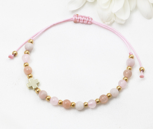 pozłacana bransoletka różaniec cielista kamienie naturalne 1872/2