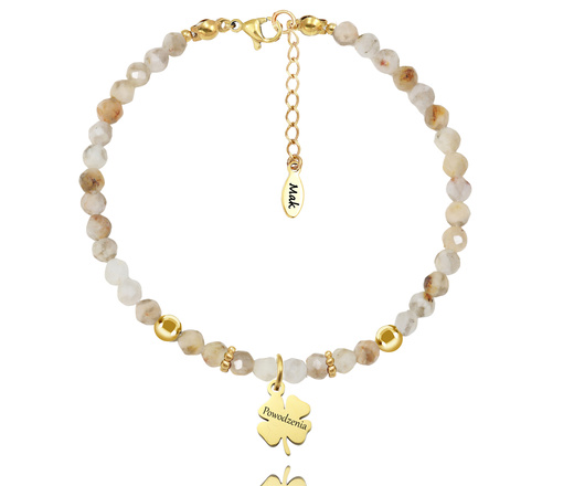 1734/10 beżowo-różowa bransoletka pozłacana z grawerem i kamieniami naturalnymi Premium