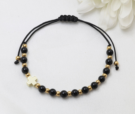 bransoletka różaniec czarny onyks stal złocona 1877/21