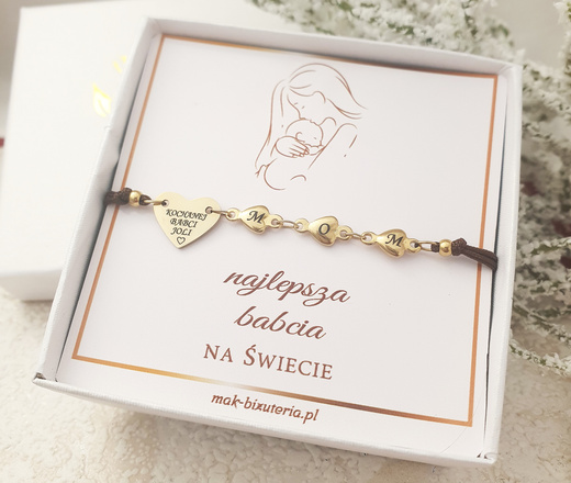 1732/5 bransoletka złocona z grawerem i serduszkami dla babci