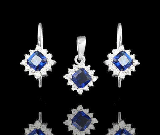 480/476 komplet srebrny z cyrkoniami niebieskimi