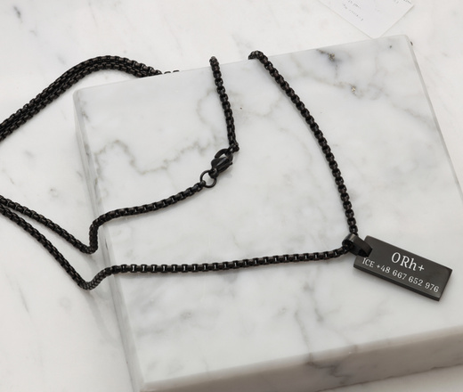 Nieśmiertelnik czarny stalowy łańcuszek z blaszką pod grawerunek 1864/1