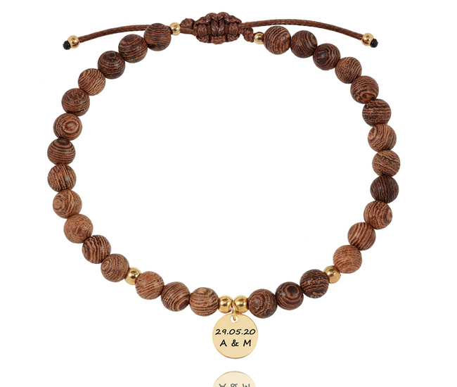 1628/1 bransoletka męska stalowa z grawerem i koralikami drewnianymi