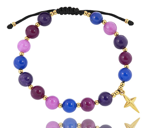 1671/31 bransoletka różaniec złota na sznureczku z jadeitem fioletowym