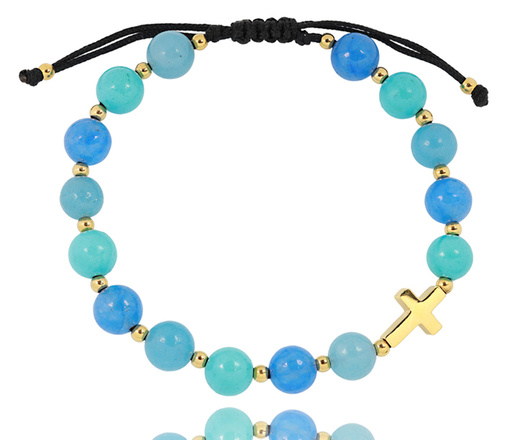 1571/30 bransoletka różaniec złota na sznureczku z jadeitem niebieskim