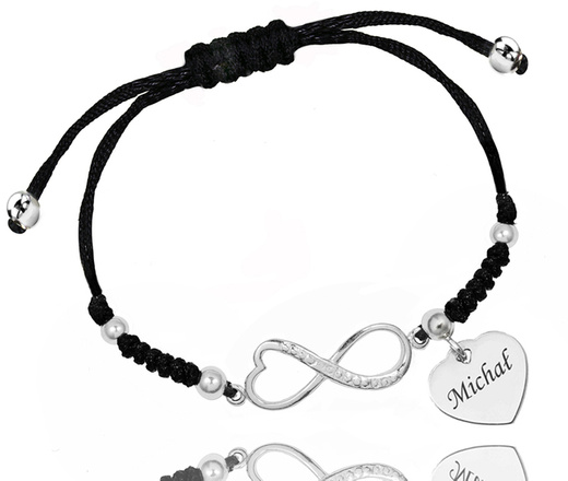 BR991 BRANSOLETKA Z GRAWEREM srebrna na sznurku zawieszka delikatna tanio