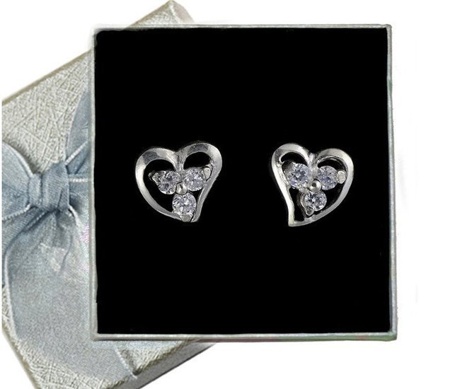 480/260 kolczyki srebrne 925 serce asymetryczne cyrkonia