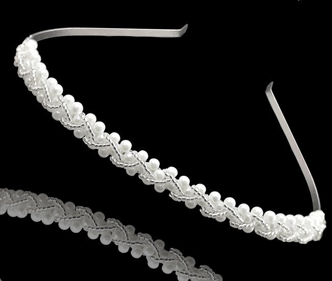 OFERTA DOTYCZY POSREBRZANEJ OPASKI ZDOBIONEJ BIAŁYMI PEREŁKAMI ORAZ MIYUKAMI DOSKONAŁA NA ŚLUB SERDECZNIE ZAPRASZAMY!!!