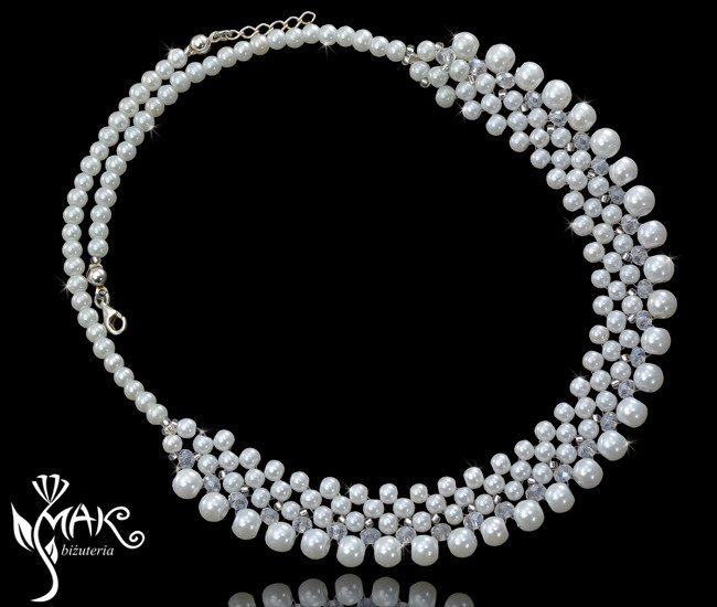 KPL421/3 PIĘKNY KOMPLET PEREŁKI KOŁNIERZYK - ŚLUB