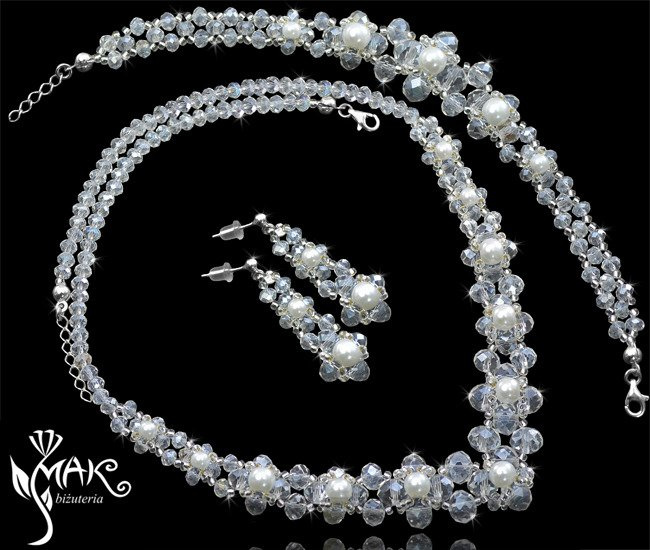 NK436 NASZYJNIK PEREŁKI SZKLANE - KRYSZTAŁY - ŚLUB