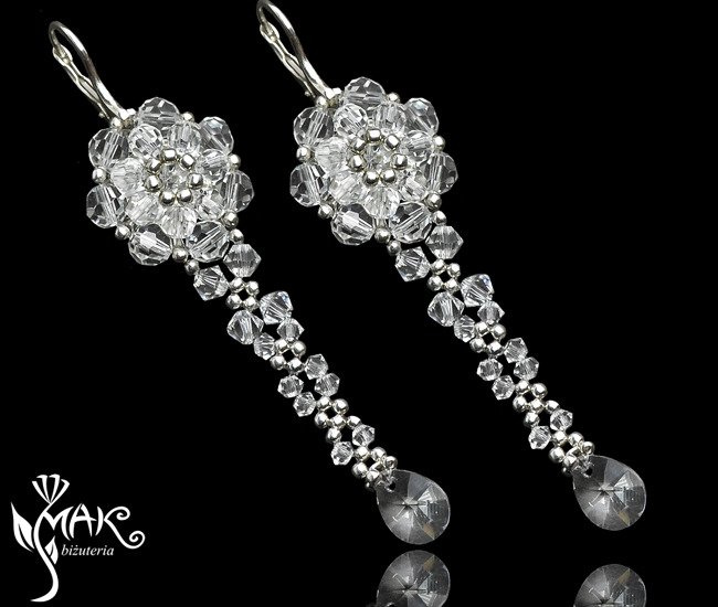PIĘKNE RĘCZNIE WYPLATANE KOLCZYKI IDEALNE DO SUKNI ŚLUBNEJ ŚLUBNEJ, WIECZOROWEJ.