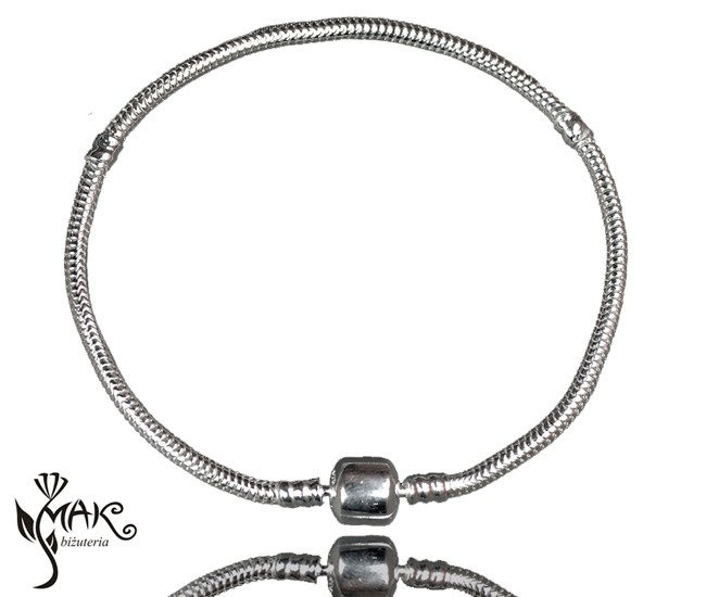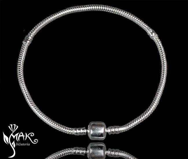 Bransoletka modułowa wykonana w całości z srebra p 925. Gruby i solidny łańcuszek sprawi, że bransoletka będzie idealną bazą pod koraliki modułowe. Bransoletka po zapełnieniu koralikami skraca się o długość wewnątrz o ok 2 cm. Pełna bransoletka będzie dobrze pasować na nadgarstek o średnicy 16,5 cm - 17,5 cm.