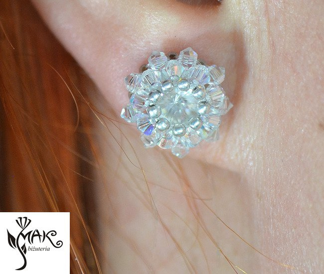 - KOLCZYKI TYPU SZTYFT Z RĘCZNIE WYPLATANYM KWIATUSZKIEM 15 MM.