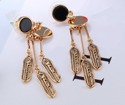 Kol 599/606 KOLCZYKI długie piórka, złocone