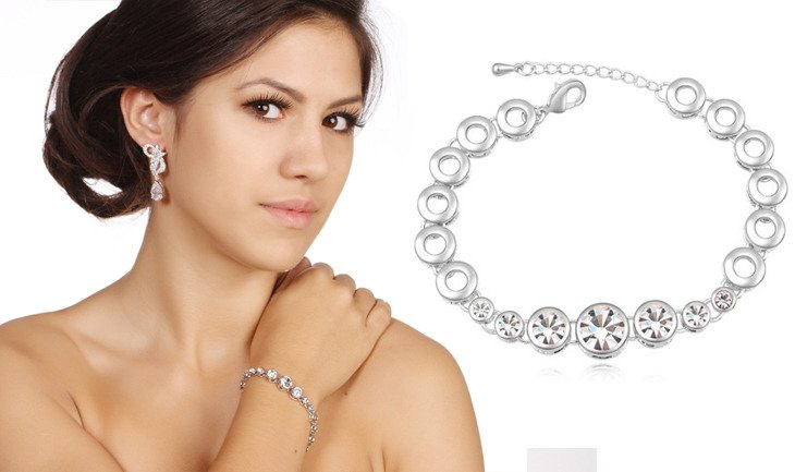 - Bransoletka wykonana jest materiału antyalergicznego pokrytego białym złotem..