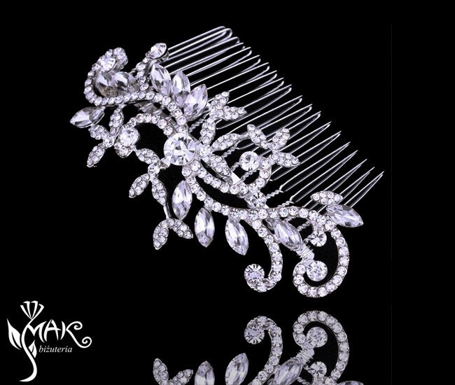 • Oferta dotyczy ślubnej posrebrzanej wsuwki do włosów zdobionej cyrkoniami.