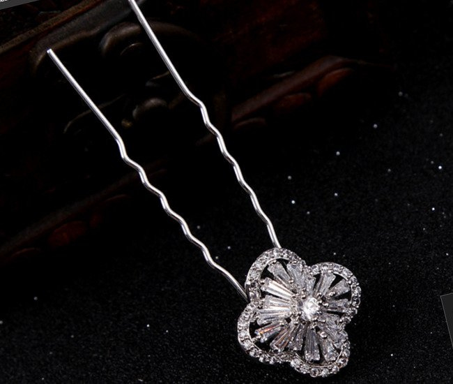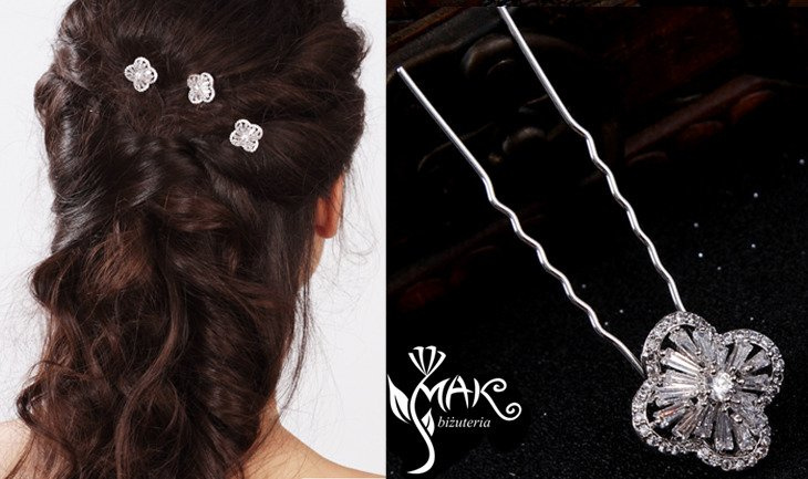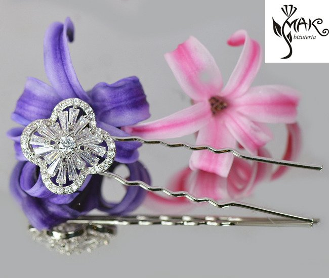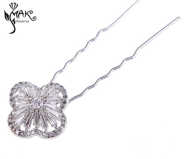 - Oferta dotyczy ekskluzywnej ślubnej wsuwki do włosów zdobionej cyrkoniami. Wsuwka wykonana z metalu antyalergicznego pokrytego platyną.