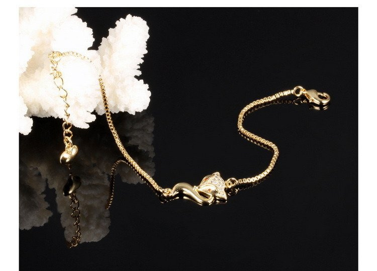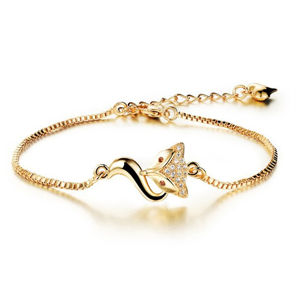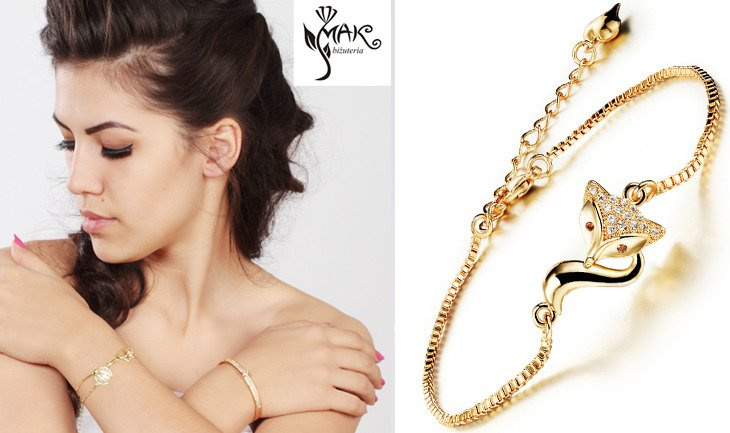 Przedmiotem oferty jest bransoletka wysadzana cyrkoniami. Bransoletka wykonana jest z materiału antyalergicznego pokrytego żółtym złotem. Cyrkonie w kolorze krystalicznym. . WYMIARY : Długość bransoletki 17 cm + 3,5 cm regulacja Rozmiar liska wysadzanego cyrkoniami 1,2 cm * 1,8 cm Biżuteria wysokiej jakości, wykonana z dbałością o każdy detal. Charakteryzuje się niepowtarzalnym wzornictwem. Fasetowane cyrkonie pięknie załamują światło i dodają blasku.