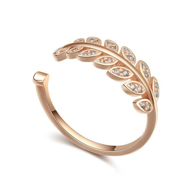 p599/440 PIERŚCIONEK złocona obrączka liść cyrkonie roz. 17