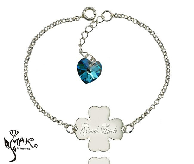 BR576/4 BRANSOLETKA Z GRAWEREM koniczynka Swarovski