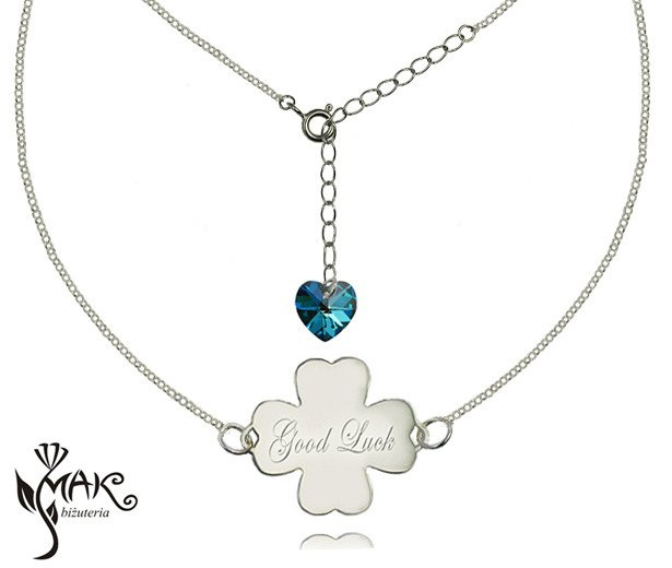 NK576/4 NASZYJNIK Z GRAWEREM koniczynka Swarovski