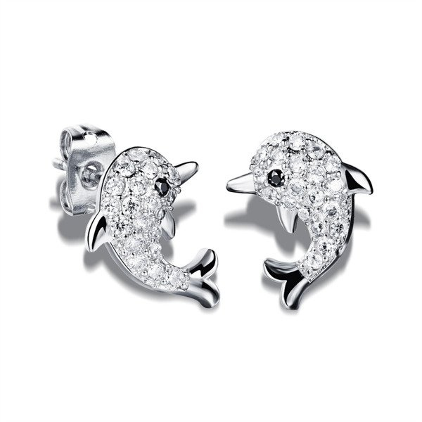 Kol 599/483 kolczyki sztyfty białe złoto delfinek