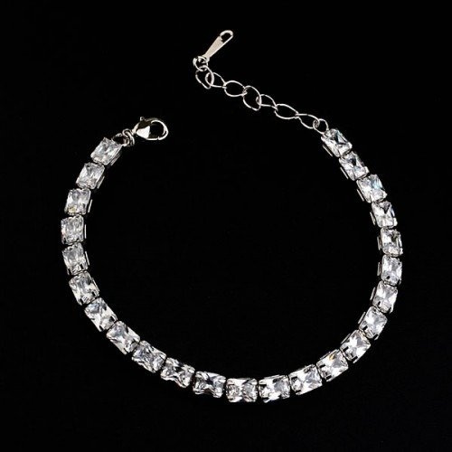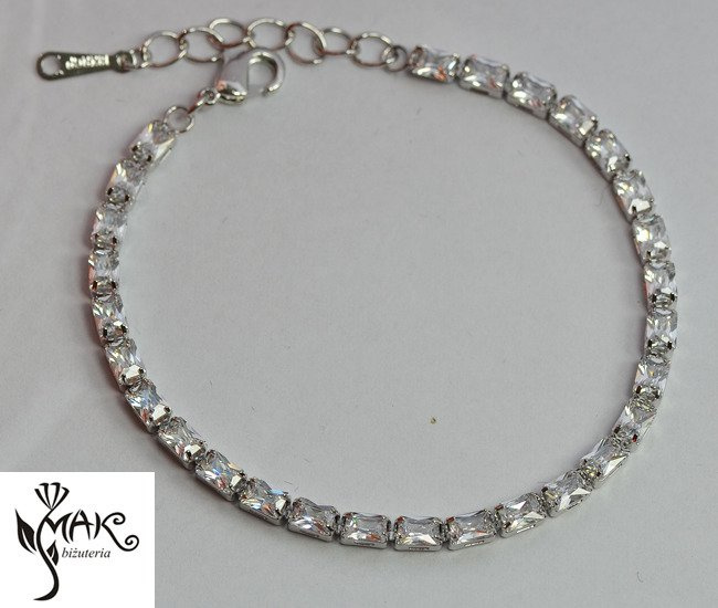 Br 599/65 delikatna BRANSOLETKA ślubna z postokątnymi cyrkoniami