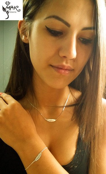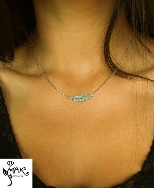 NK706 NASZYJNIK piórko 100% SREBRO 925 grawer