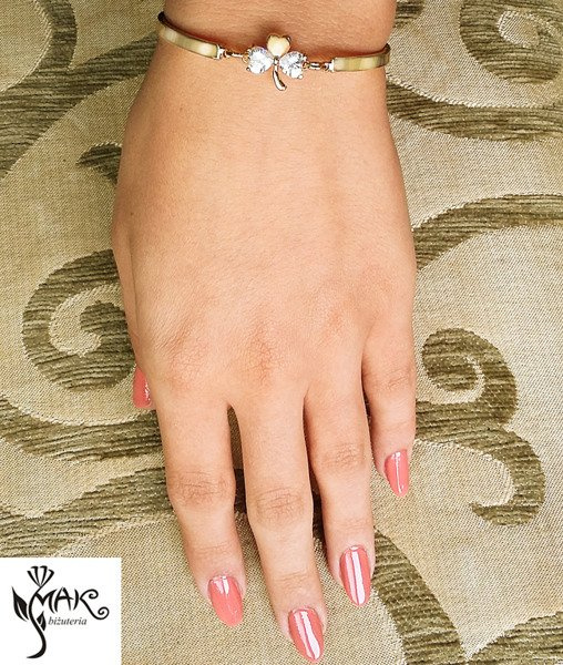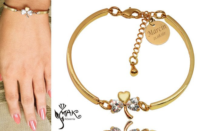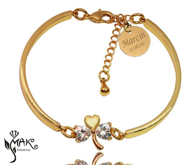 BR717 BRANSOLETKA pozłacana koniczynka grawer