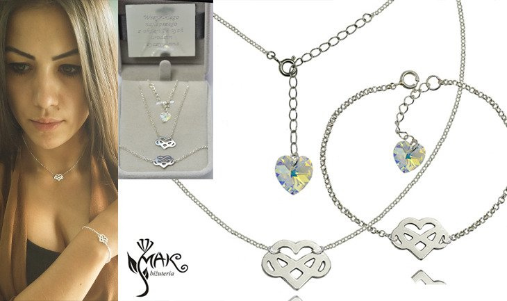 KPL718 biżuteria Swarovski KOMPLET z grawerem serce nieskończoność