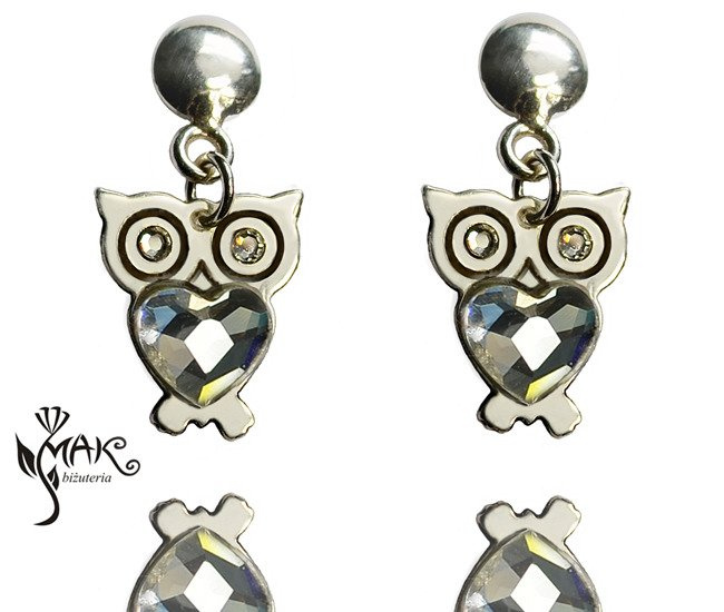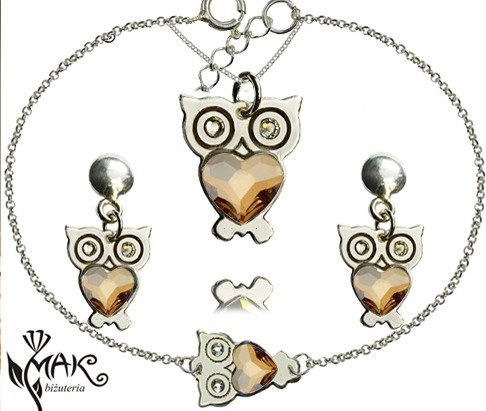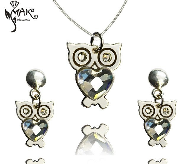 KPL719 Sowy Swarovski Elements KOMPLET kryształy + pudełko z grawerem