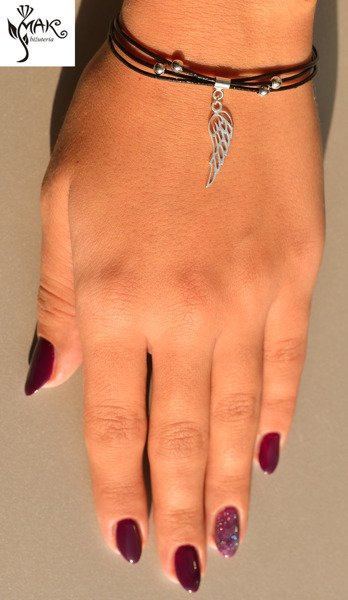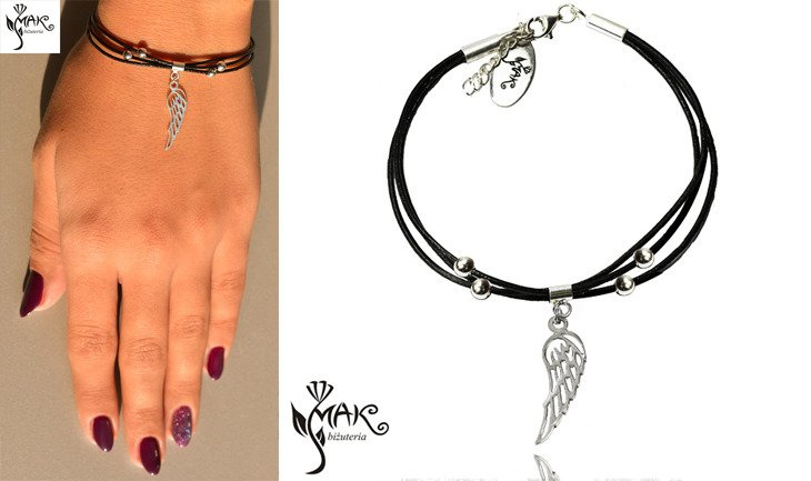 BR723 BRANSOLETKA SKÓRZANA skrzydło srebro 925 grawer