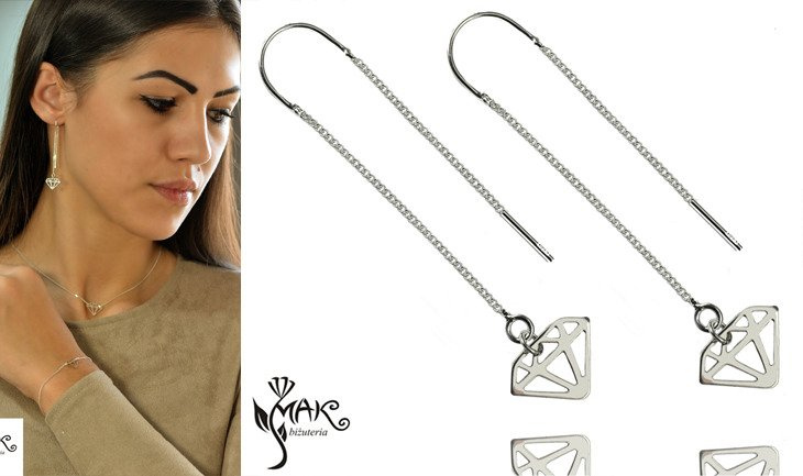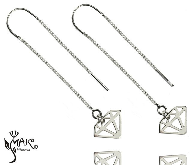 Kol 757 Kolczyki srebrne łańcuszki przeciągane diamenty