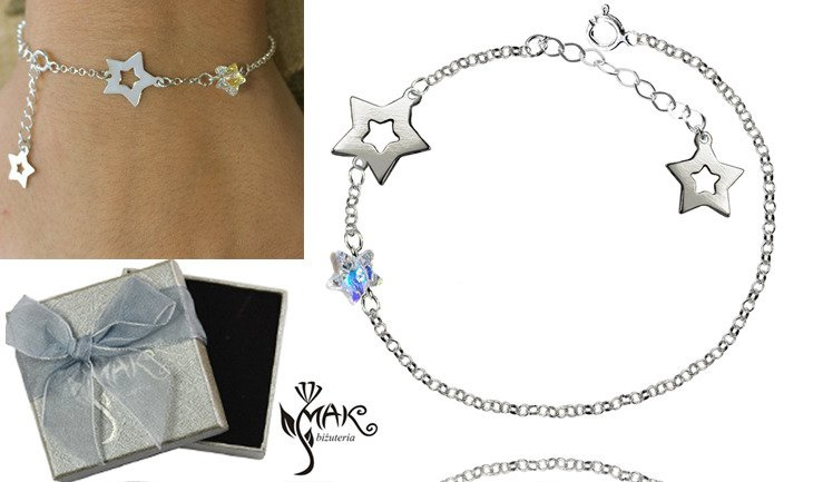 BR760 BRANSOLETKA grawer laserowy gwiazdki Swarovski Element srebro
