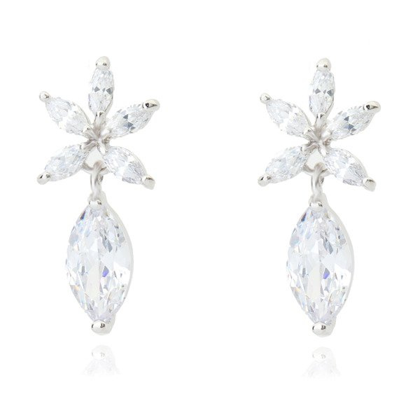 Kol 599/562 KOLCZYKI ślubne, cyrkonie łezki i mały kwiatuszek