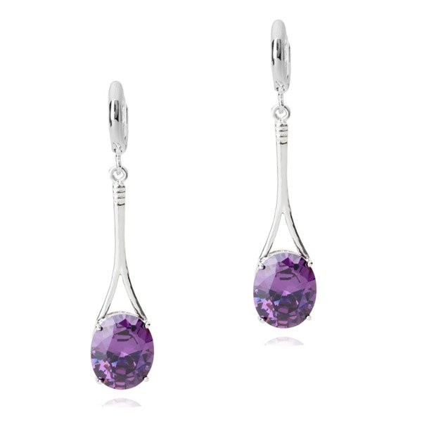 Kol 599/677 KOLCZYKI z ciemnofioletową łezką ,długie i Piękne, srebrne