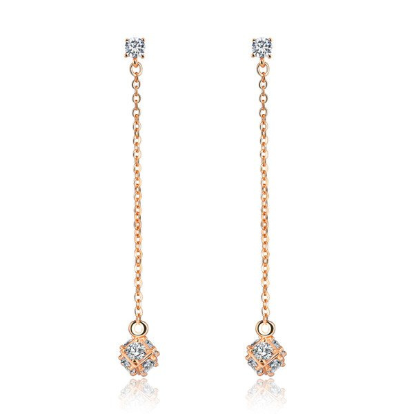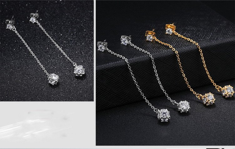Kol 599/589 KOLCZYKI żółte złoto, z kostką wysadzaną cyrkoniami, długie