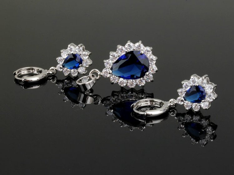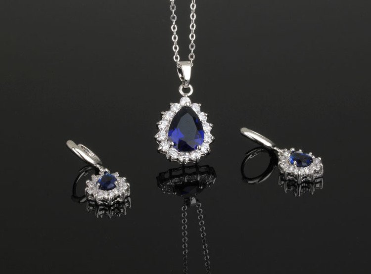 - Przedmiotem oferty jest komplet wysadzany szafirowymi cyrkoniami.