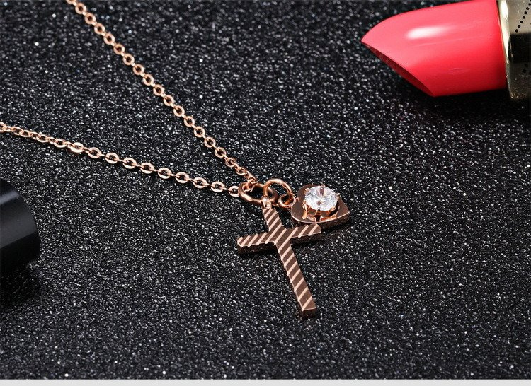 Przedmiotem oferty jest naszyjnik ze stali szlachetnej. Materiały : - Stal szlachetna pozłacana różowym złotem, powłoka galwaniczna odporna na ścieranie, - Długość naszyjnika - 41,5 cm + 5,5 cm, - Rozmiar krzyżyka 20 * 10 mm Biżuteria wysokiej jakości, wykonana z dbałością o każdy detal. Charakteryzuje się niepowtarzalnym wzornictwem. Fasetowane cyrkonie pięknie załamują światło i dodają blasku. STAL CHIRURGICZNA – REWELACYJNA ALTERNATYWA DLA SREBRA TRWAŁA, NIE OKSYDUJE, NIE ZMIENIA KOLORU W PRZECIWIEŃSTWIE DO SREBRA A CO NAJWAŻNIEJSZE CAŁKOWICIE BEZPIECZNA DLA ZDROWIA -nie uczula. JEJ POZYTYWNE WŁAŚCIWOŚCI JUŻ DAWNO DOCENIŁA MEDYCYNA
