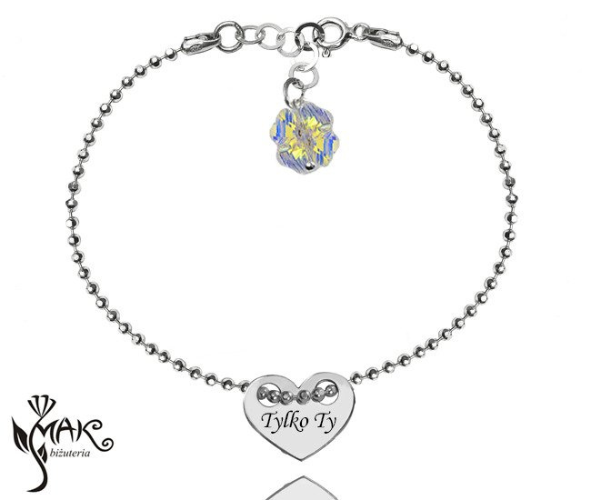 BR832 BRANSOLETKA Z GRAWEREM Swarovski Elements serce