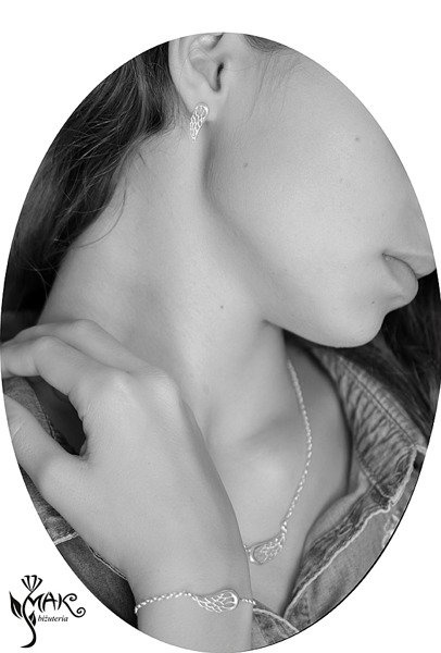 - Przedmiotem oferty jest komplet składający się z kolczyków, naszyjnika oraz bransoletki.