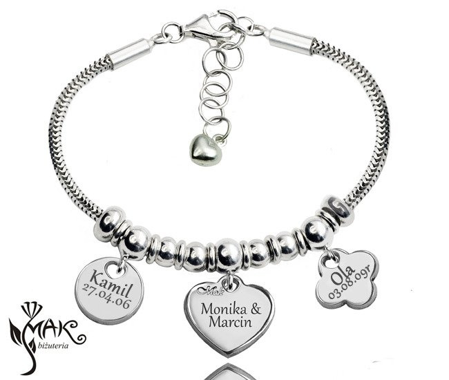 BRANSOLETKA Z GRAWEREM, BRANSOLETKA GRAWEROWANA WYKONANA Z: