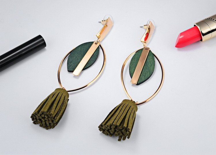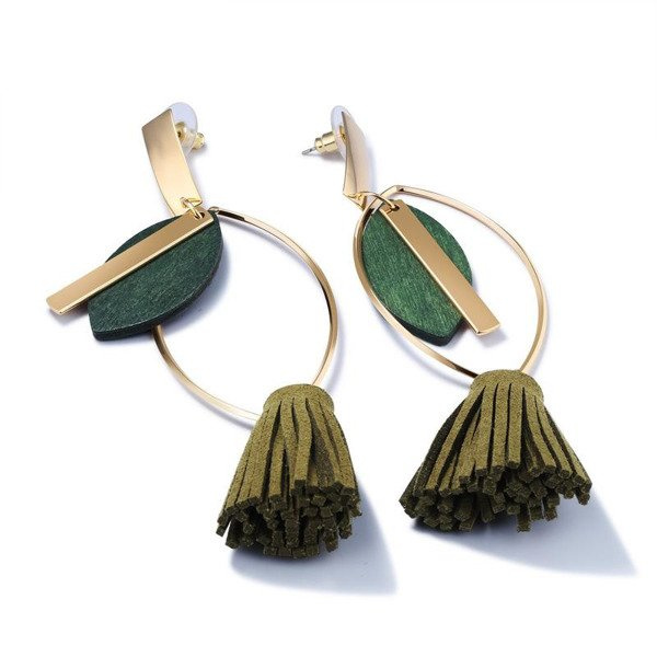 Kol 599/757 KOLCZYKI khaki, wiszące z frędzlami, drewniany element