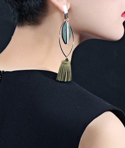 - Przedmiotem oferty są kolczyki khaki długie frędzle chowsty