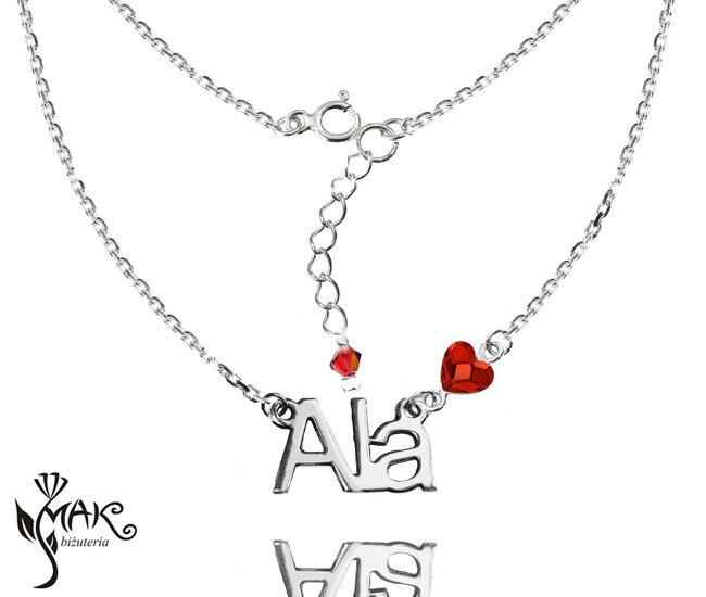 BR905 NASZYJNIK z imieniem serduszko Swarovski Elem. 100% SREBRO