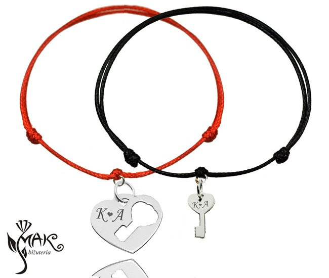 BR908 BRANSOLETKI Z GRAWEREM serce kluczyk